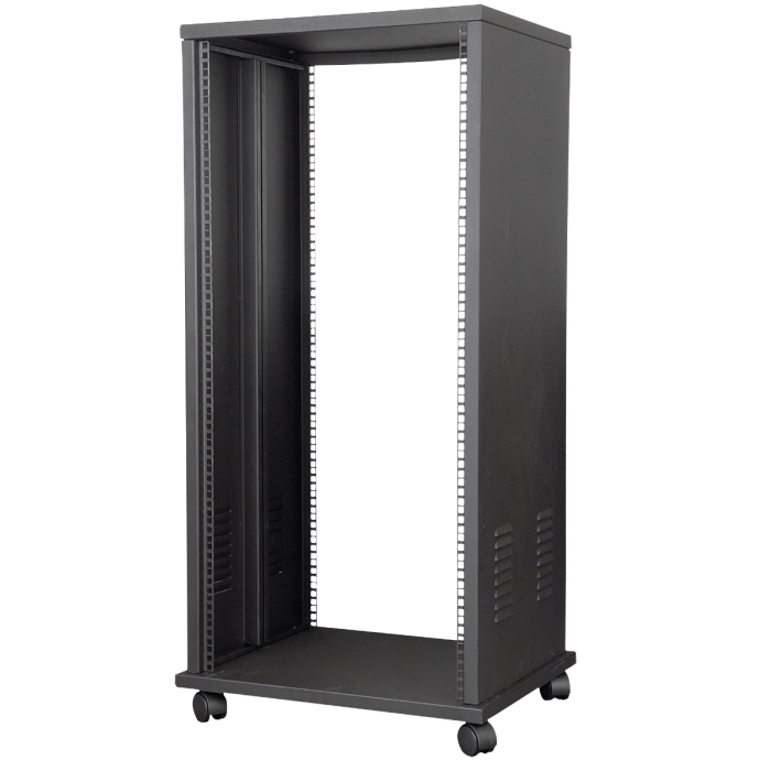 Professioneel 19-inch rack van 28U voor het veilig monteren en organiseren van je audio-, licht- of IT-apparatuur. Het stevige, gepoedercoate metalen frame is voorzien van geventileerde zijkanten en robuuste montagerails aan de voor- en achterkant. Het rack wordt plat geleverd en is eenvoudig te monteren met de meegeleverde M6-montageset. Voor mobiliteit en stabiliteit worden vier zwenkwieltjes en vier rubberen voetjes meegeleverd. Geschikt voor binnengebruik en een maximale belasting van 170 kg.