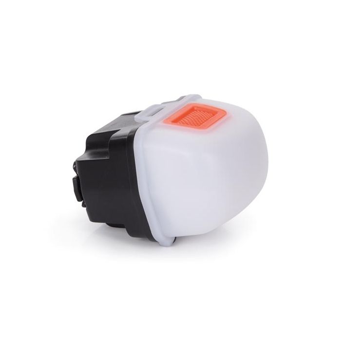 - modi: 100% wit (aan) - 15% wit - 100% rood - knipperen (rood) - uit
