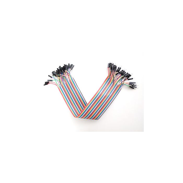 Handy for making wire harnesses or jumpering between headers on PCB's. These premium jumper wires are 75mm long and come in a 'strip' of 10. They have 0.1\" male header contacts on one end and 0.1\" female header contactsfit on the other end cleanly next to each other on standard-pitch 0.1\" (2.54mm) header. The best part is they come in a 10-pin ribbon cable. You can always pull the ribbon wires off to make individual jumpers, or keep them together to make neatly organized wire harnesses.